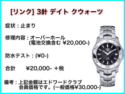 レポート タグ ホイヤー 正規店でのオーバーホール エドワードクラブのメンテナンス料金と納期を検証しました Pleasure